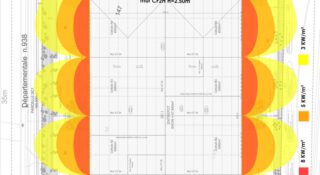 Calcul avec le logiciel FLUMilog, cartographie des flux thermiques sur plan d'ensemble.